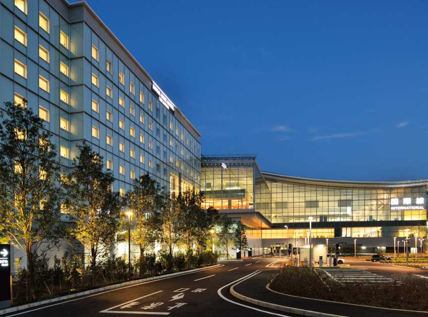 Guests enter The Royal Park Hotel Tokyo Haneda through a gateway built