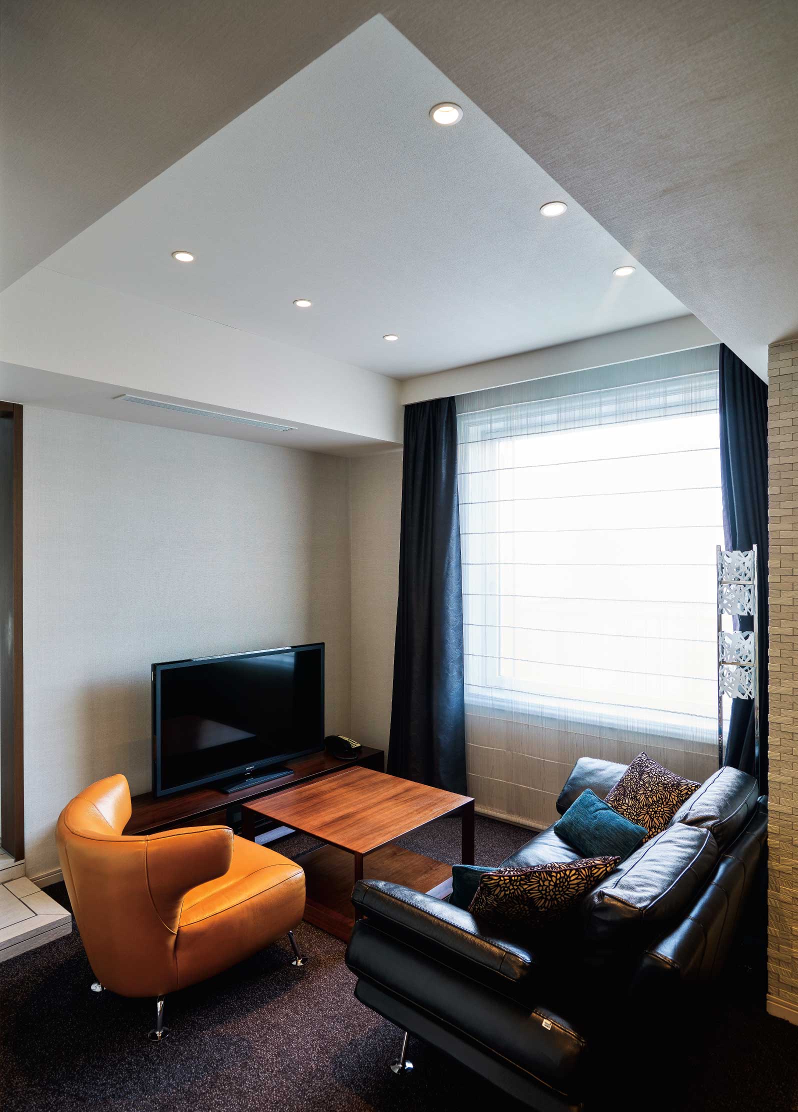 In addition, the lounge and sleeping spaces surrounding the bathing area are furnished with choice drapes and carpeting by Kawashima Selkon, part of the LIXIL family of companies. Artwork featuring textiles by Kawashima Selkon‹s in-house designer, Sumiko Honda, provides the finishing touch.