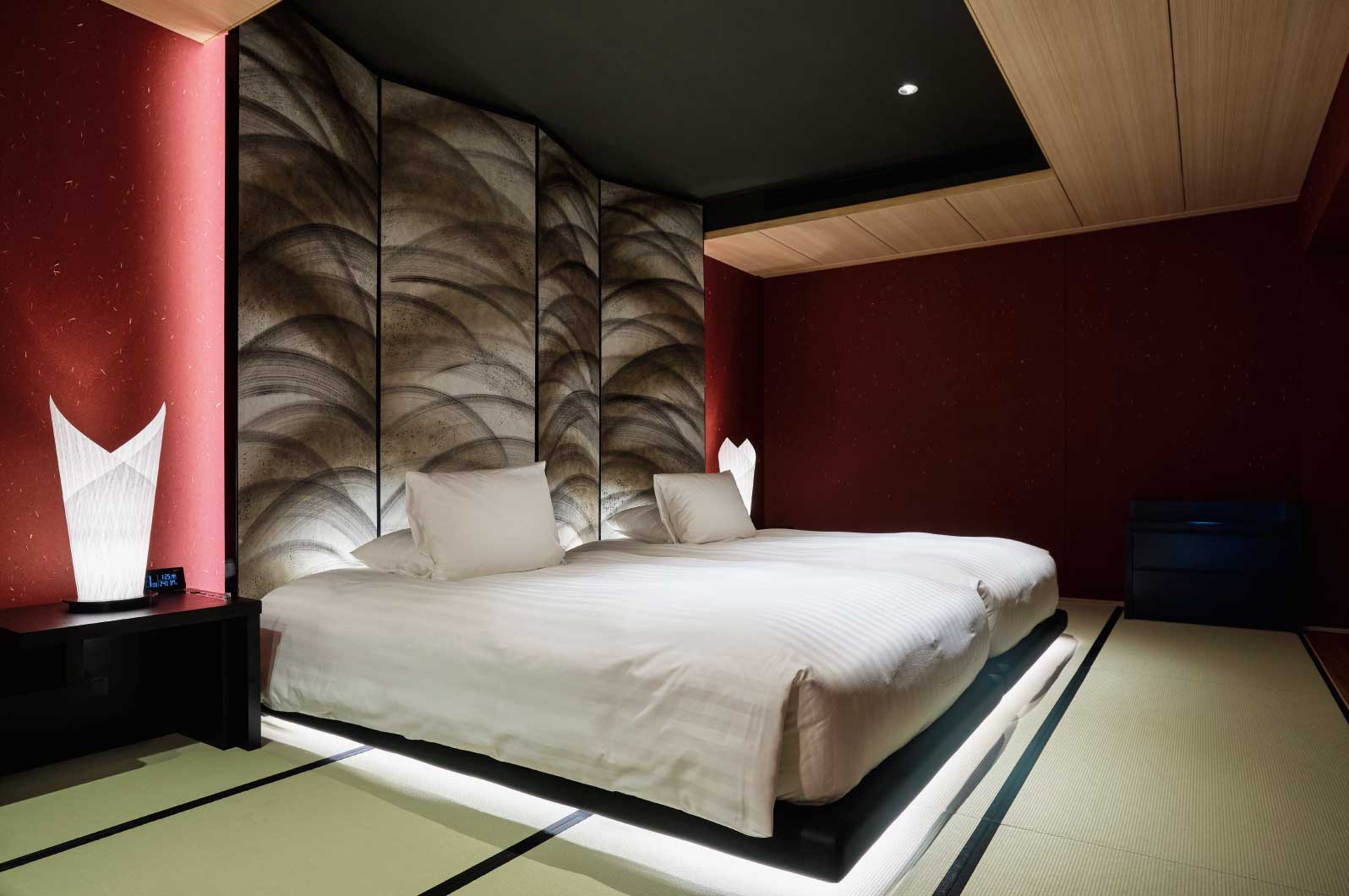 to time-honored Japanese style. Low-set furnishings, minimalist lines, soft lighting,